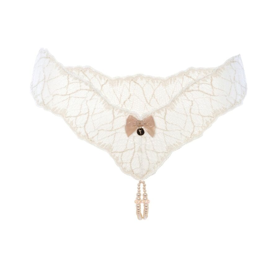 Tief ausgeschnittene Unterteile mit hohem Beinausschnitt, die die die Figur stylen und die Beine optisch verlängern. Es ist aus recycelter italienischer Spitze, hochtransparentem Tüll und silbernen Lurex-Gummibändern gefertigt. Das BRACLI-Siegel wird durch die doppelte Perlenkette platziert, die zwei Arten von Empfindungen erreichen kann: Stimulation sowohl des Mannes als auch der Frau in einer sexuellen Beziehung. Die Perlenkette sollte so long bewegt werden, bis sie den Klitorisbereich berührt. Und bei der Penetration erlebt er ein zusätzliches Gefühl, wenn sein Penis durch das Loch der doppelten Perlenkette geführt wird.