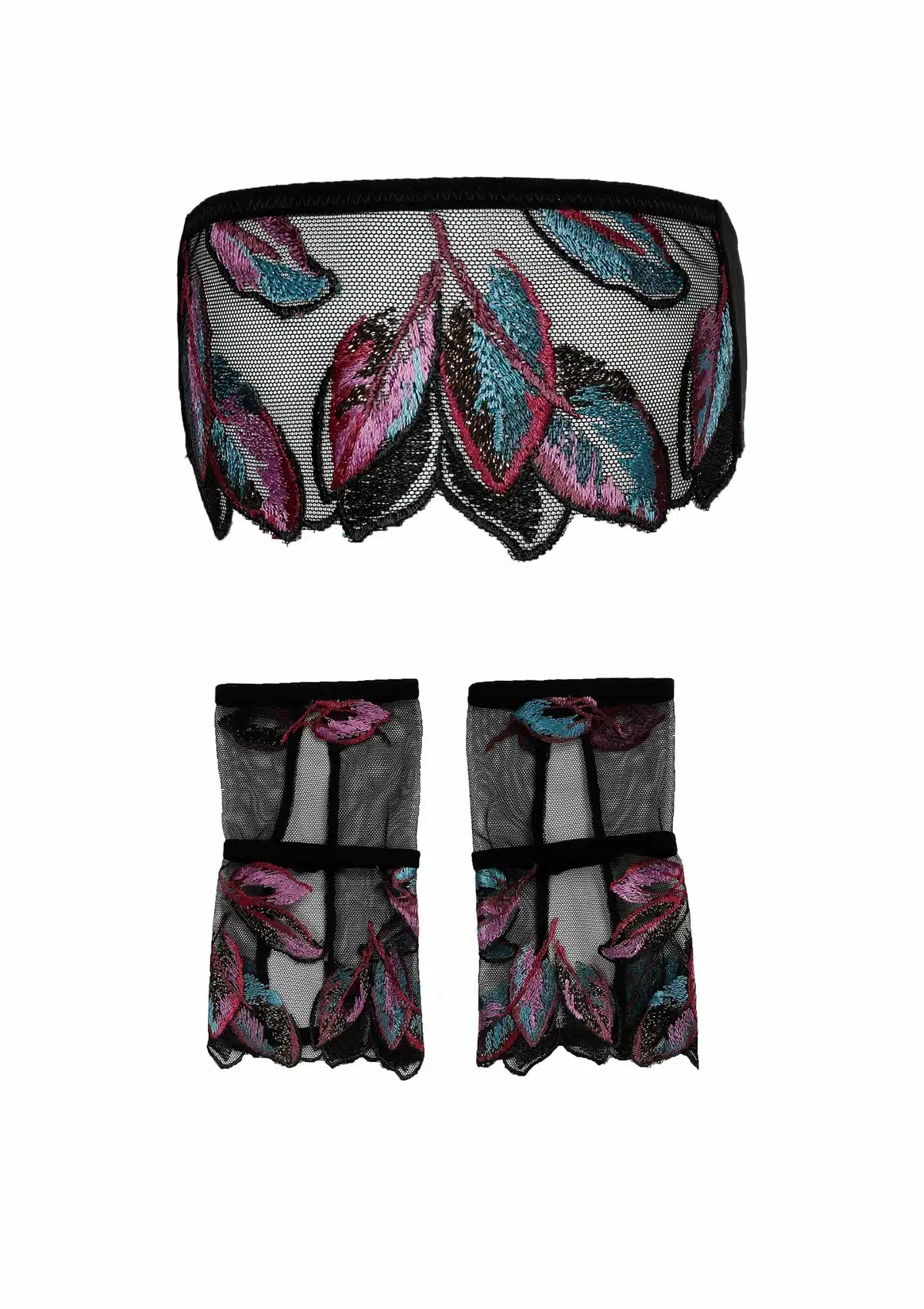 Together they form a complete set for playful, romantic and sensual moments. The embroidered details add a luxurious touch and make it fit perfectly within the Oiseau de Paradis collection.