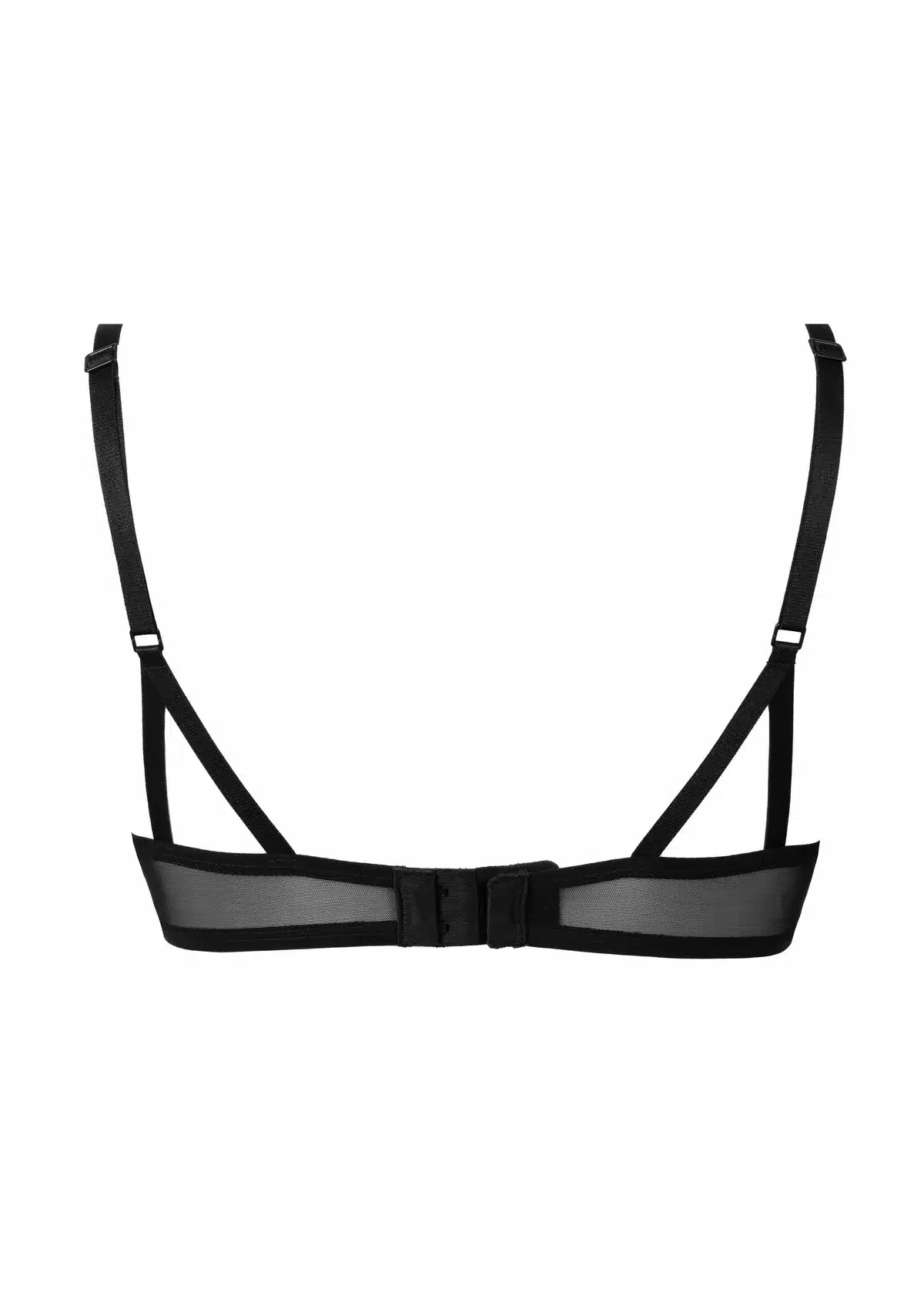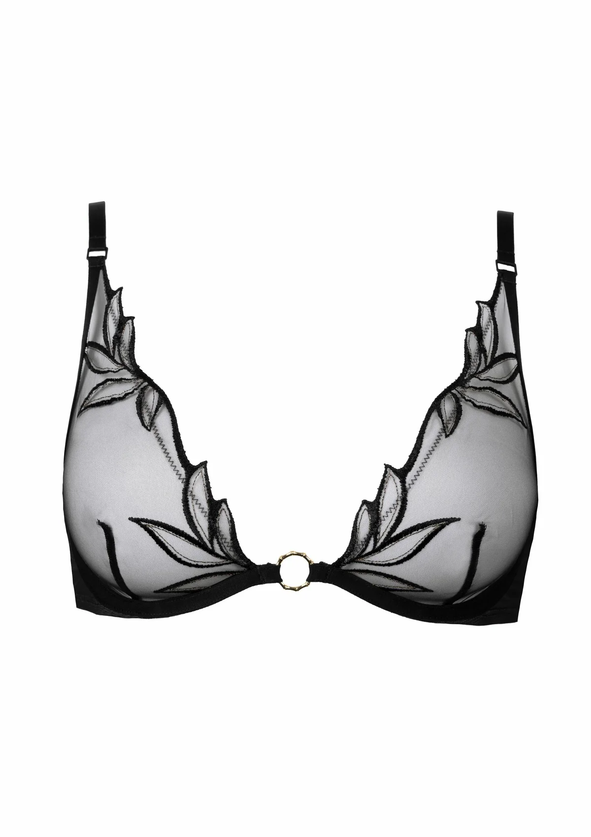 The sheer tulle plays with light and shade, while botanical embroidery elegantly frames the décolletage and emphasizes the natural shapes of the bust. The light underwire offers soft, discreet support without sacrificing comfort or elegance.