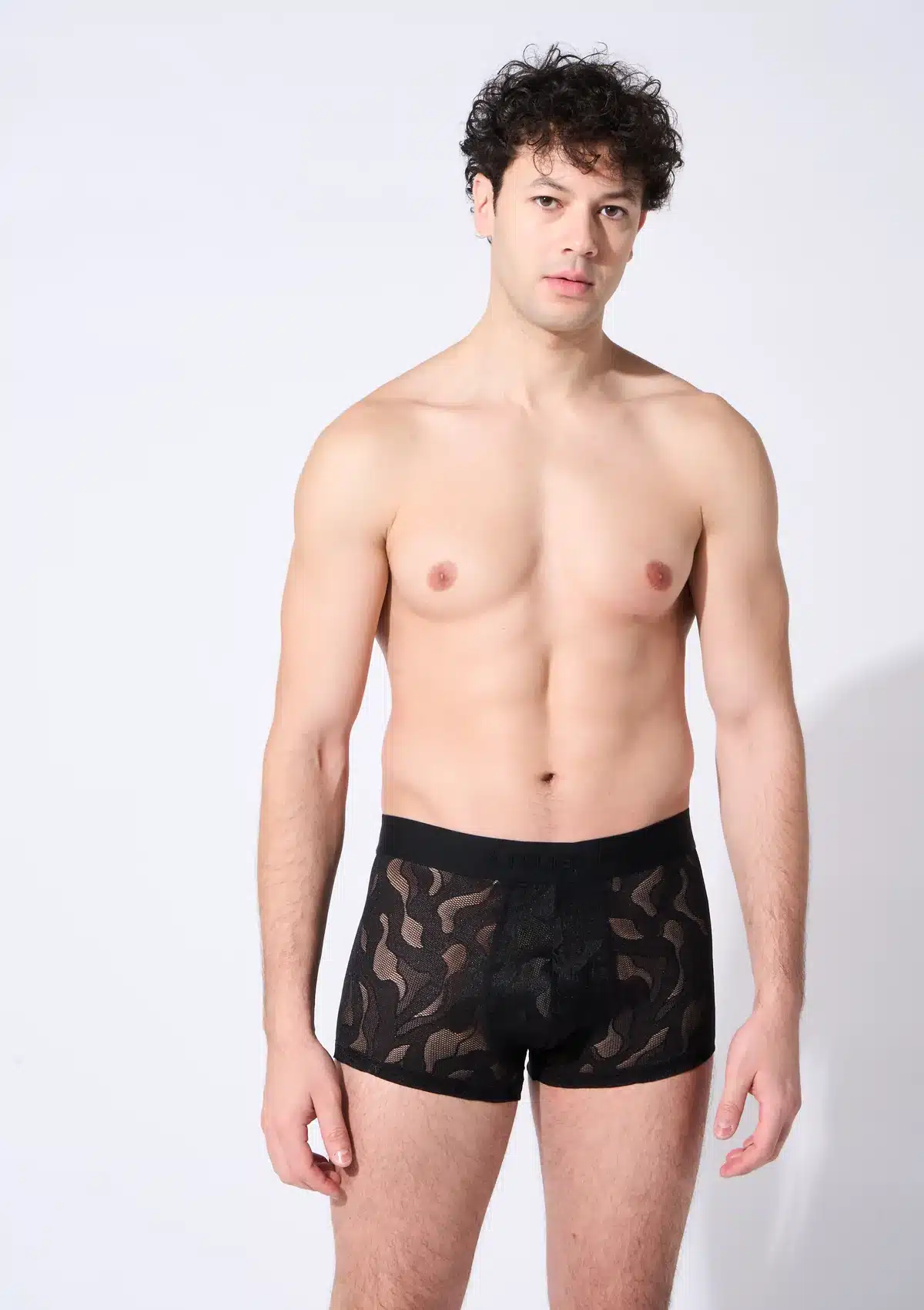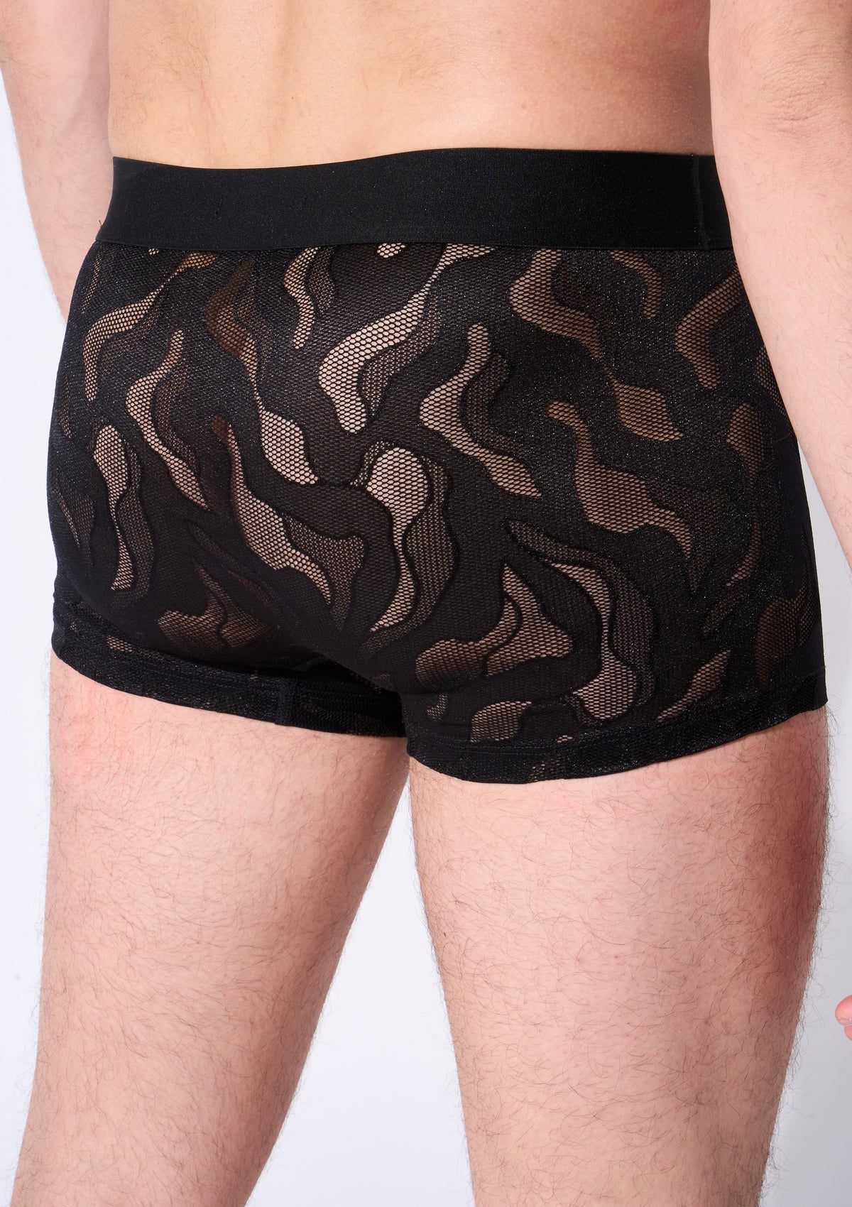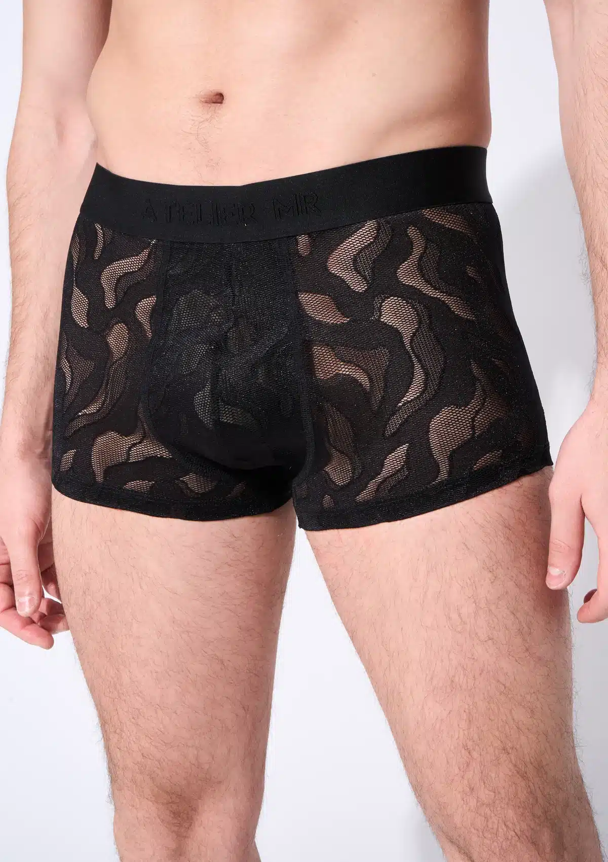 The Boxer Instinct from the Atelier Monsieur collection is a bold and stylish men’s boxer with a unique camouflage-inspired lace pattern. The interplay of shades and transparency subtly reveals skin and creates a sensual and modern look.