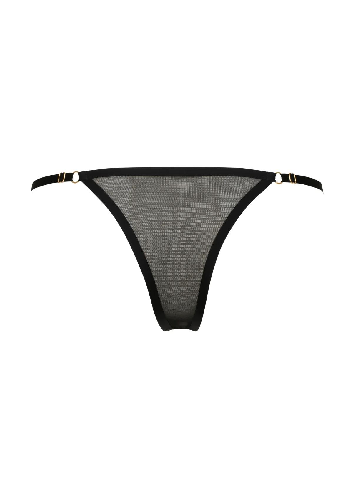 The Tanga Insoutenable Légèreté is made of soft, transparent tulle that wears light and comfortable. The sides can be elegantly opened thanks to subtle gold buttons and dainty jewels, playfully accentuating the feminine shapes. The sophisticated design seamlessly complements the matching bralette and other items from the Insoutenable Légèreté collection.