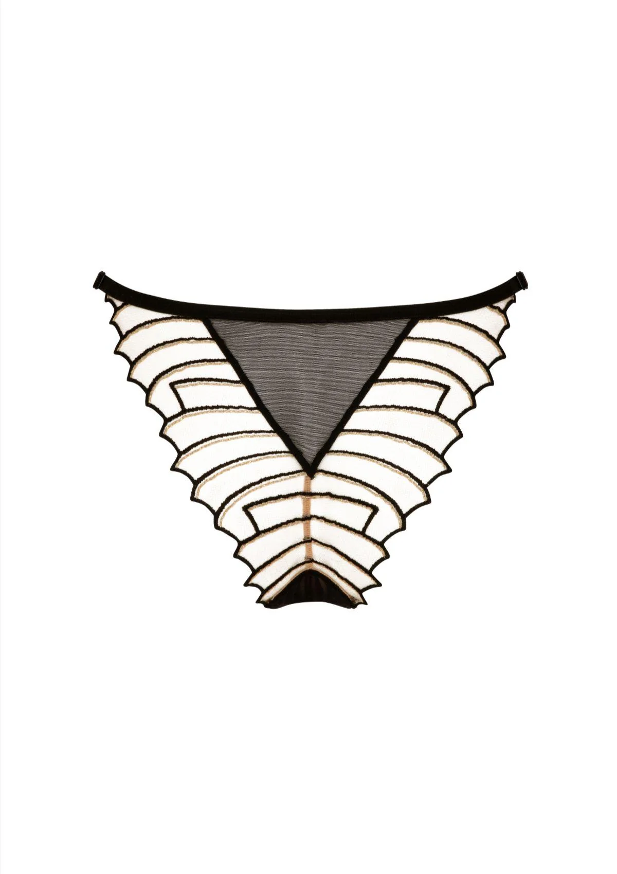 The Cosmic Dream briefs combine sophisticated transparency with comfort to wear. The copper-colored details and graphic embroidery make these briefs both elegant and seductive – perfect for wearing with the matching Cosmic Dream bras or bustier.