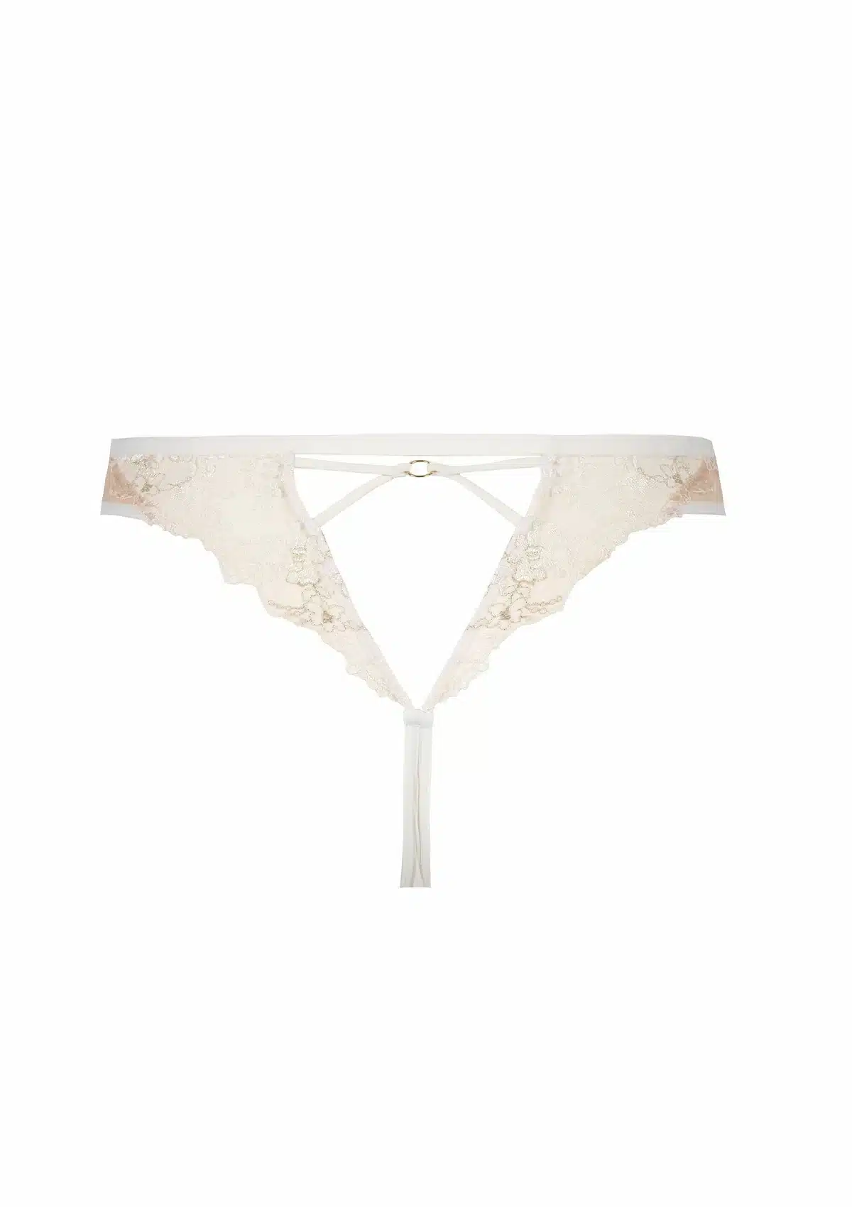 The Tanga Après Minuit Pearl is an elegant and seductive design within the iconic Après-Minuit Pearl collection. The front is composed of multiple layers: ivory mesh, soft skin-colored tulle and a beautiful black floral embroidery on a nude base. Gold threads in the embroidery and matching accessories give the tanga a luxurious, subtly shiny finish.